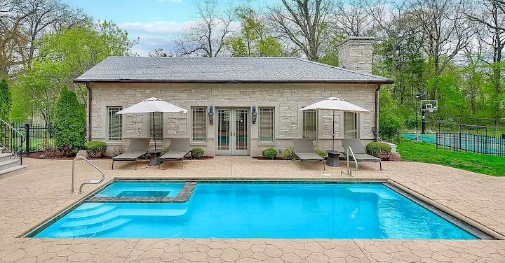 Located in Downtown Villa Park, within walking distance of the prairie path and metra train station. The house is a log cabin, inside are two master bedrooms, a spare bed room, 4 full bathrooms, full basement with wet bar and workout equipment, the main floor houses a beautiful kitchen. Its a beautiful home with plenty of guest space.
